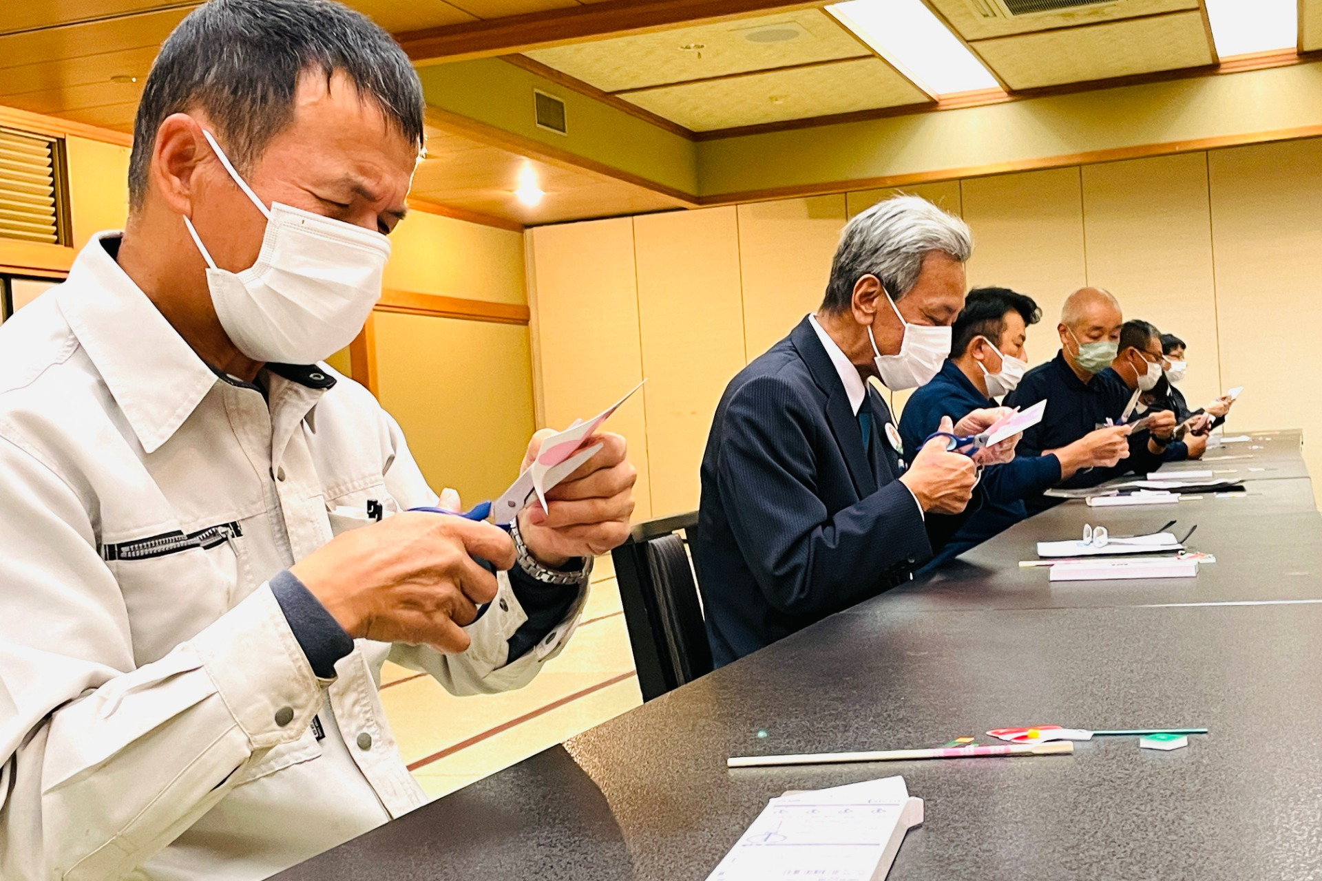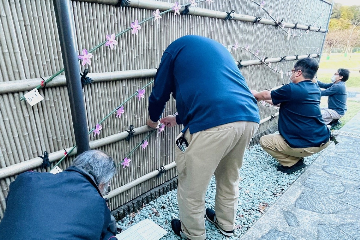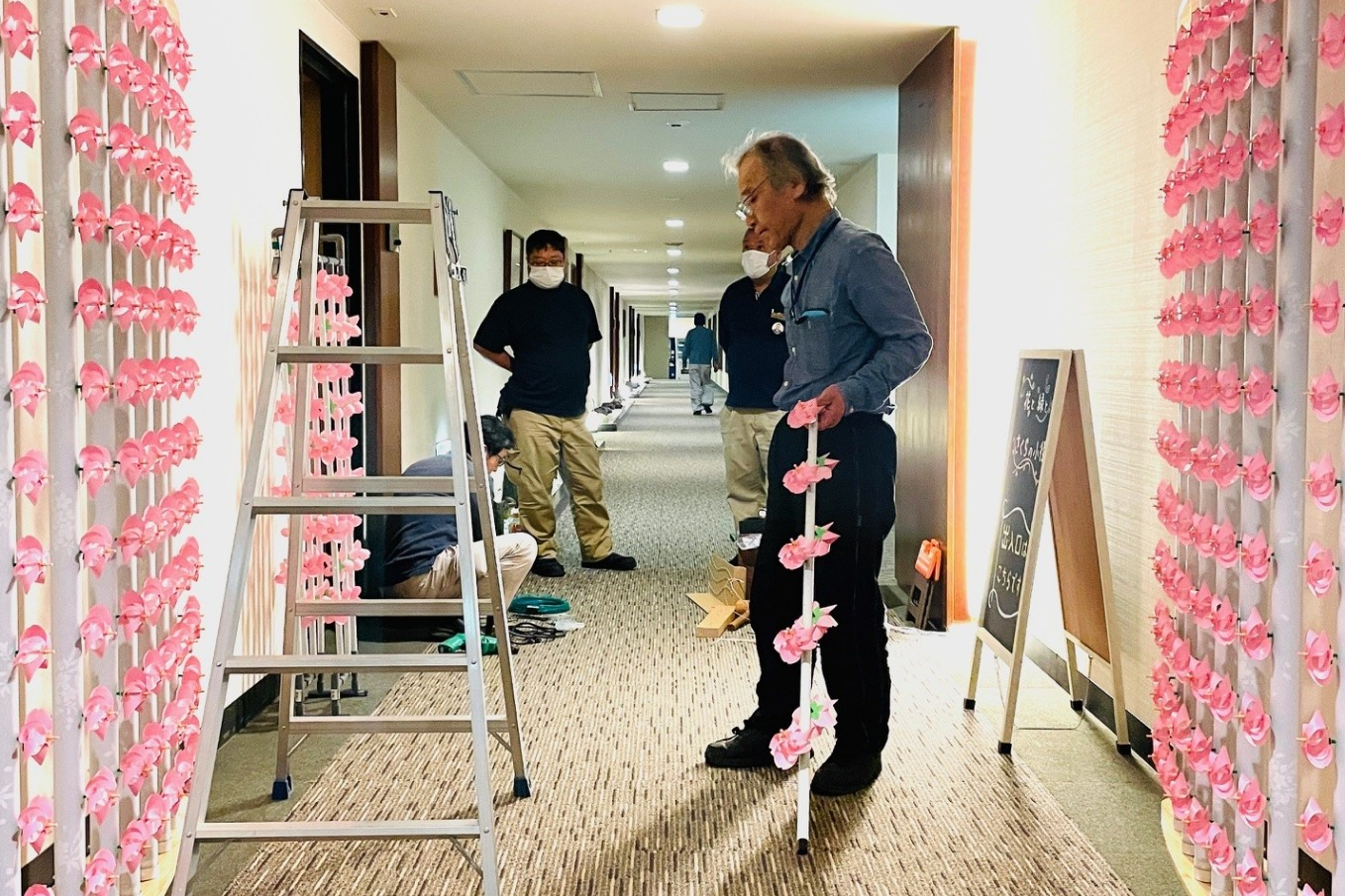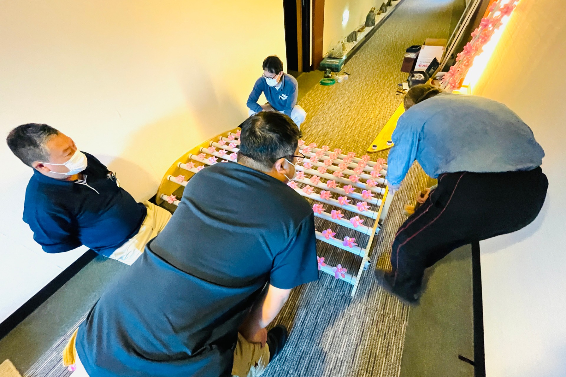 広井先生に指導いただきながら、飾り付け用の風車をスタッフが一つ一つ手作りしました。