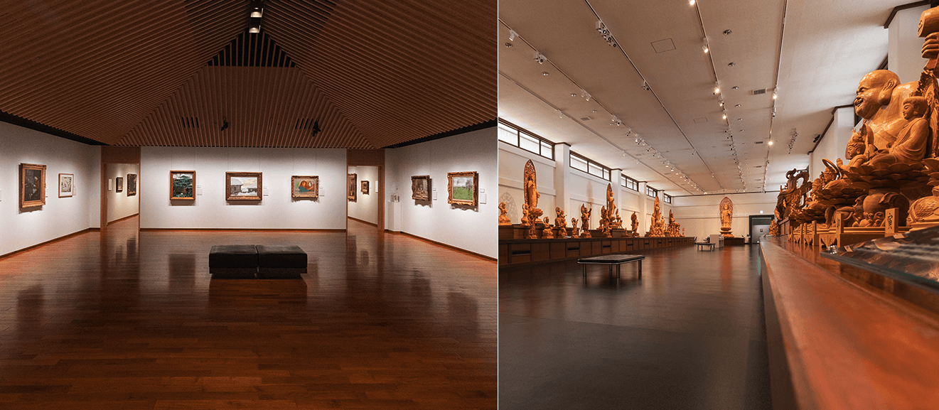 近代絵画と仏教美術、2つのギャラリーからなる当美術館は、美術品の展示公開をはじめ美術品及び美術品資料の収集、保管、調査研究活動に注力しています。