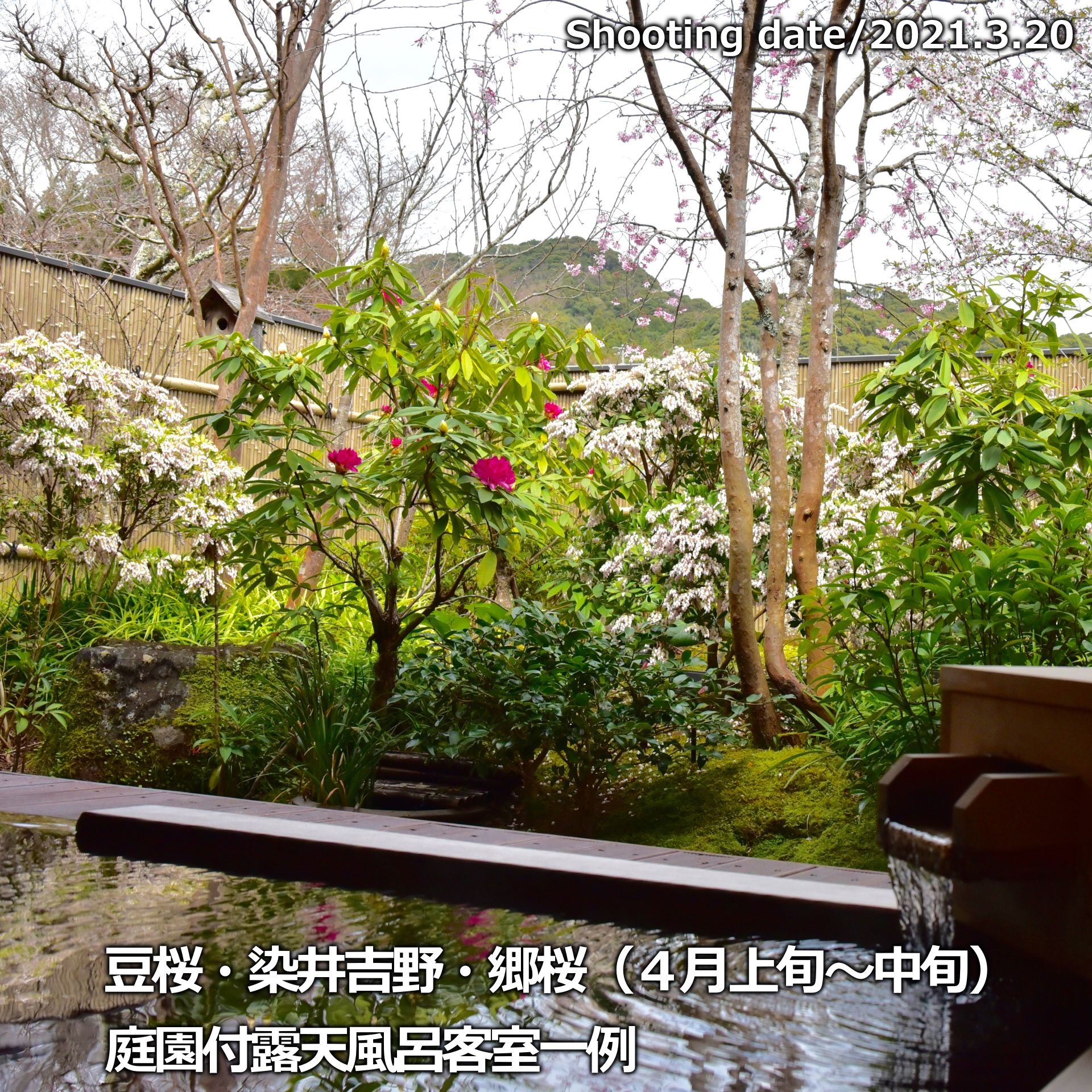 また、庭園付露天風呂客室や露天風呂付客室、和モダン和室の一部のお部屋、大浴場でも花見をお楽しみいただけます。