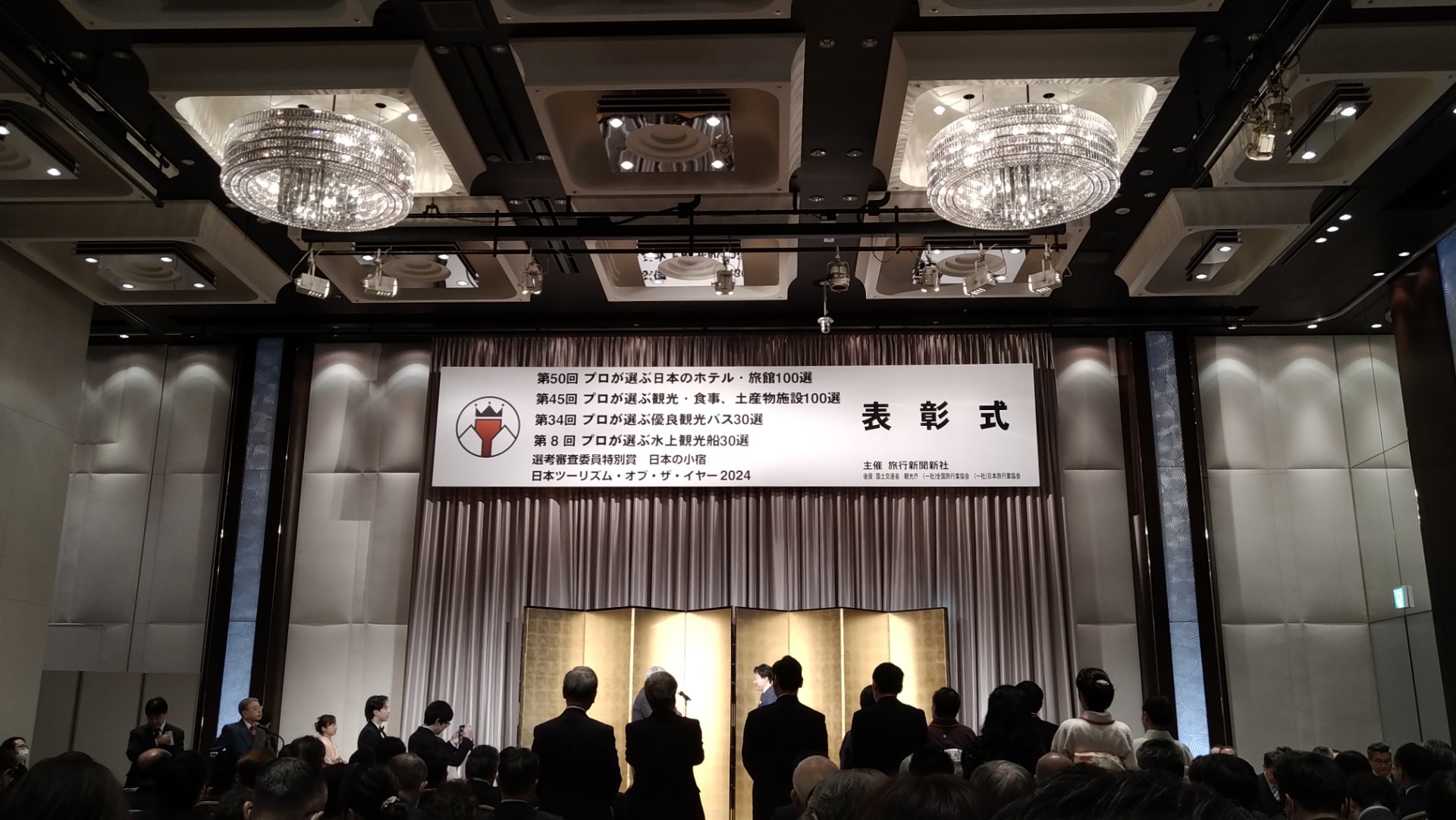 先日1月17日、新宿京王プラザホテルで行われた「第50回プロが選ぶ日本のホテル旅館100選」表彰式にて、下田セントラルホテルは「総合」「もてなし」「施設」部門で入賞しました。