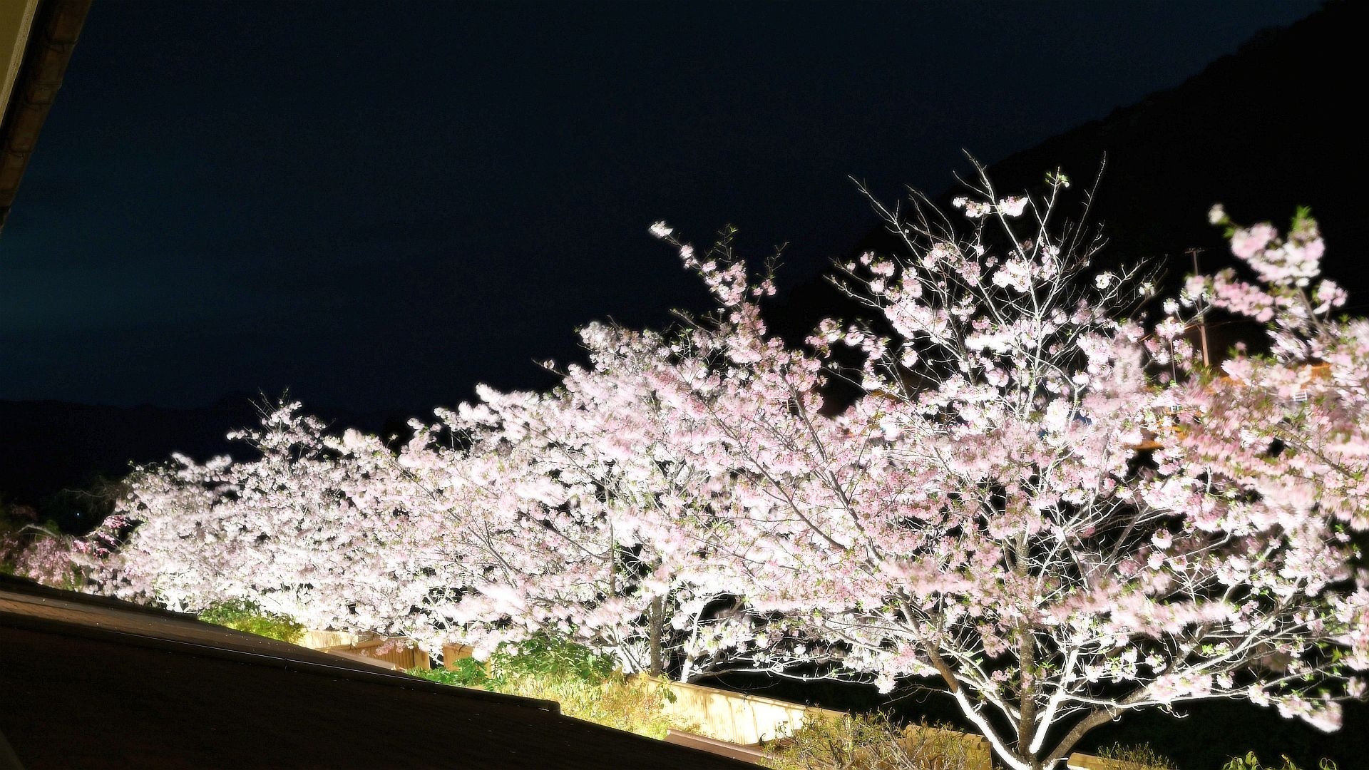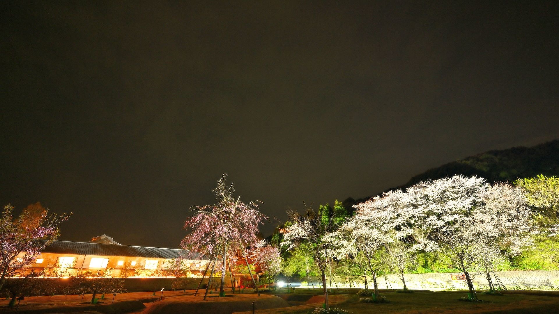 穏やかな里山の宵の中で、幻想的に照らし出された桜をお楽しみください。