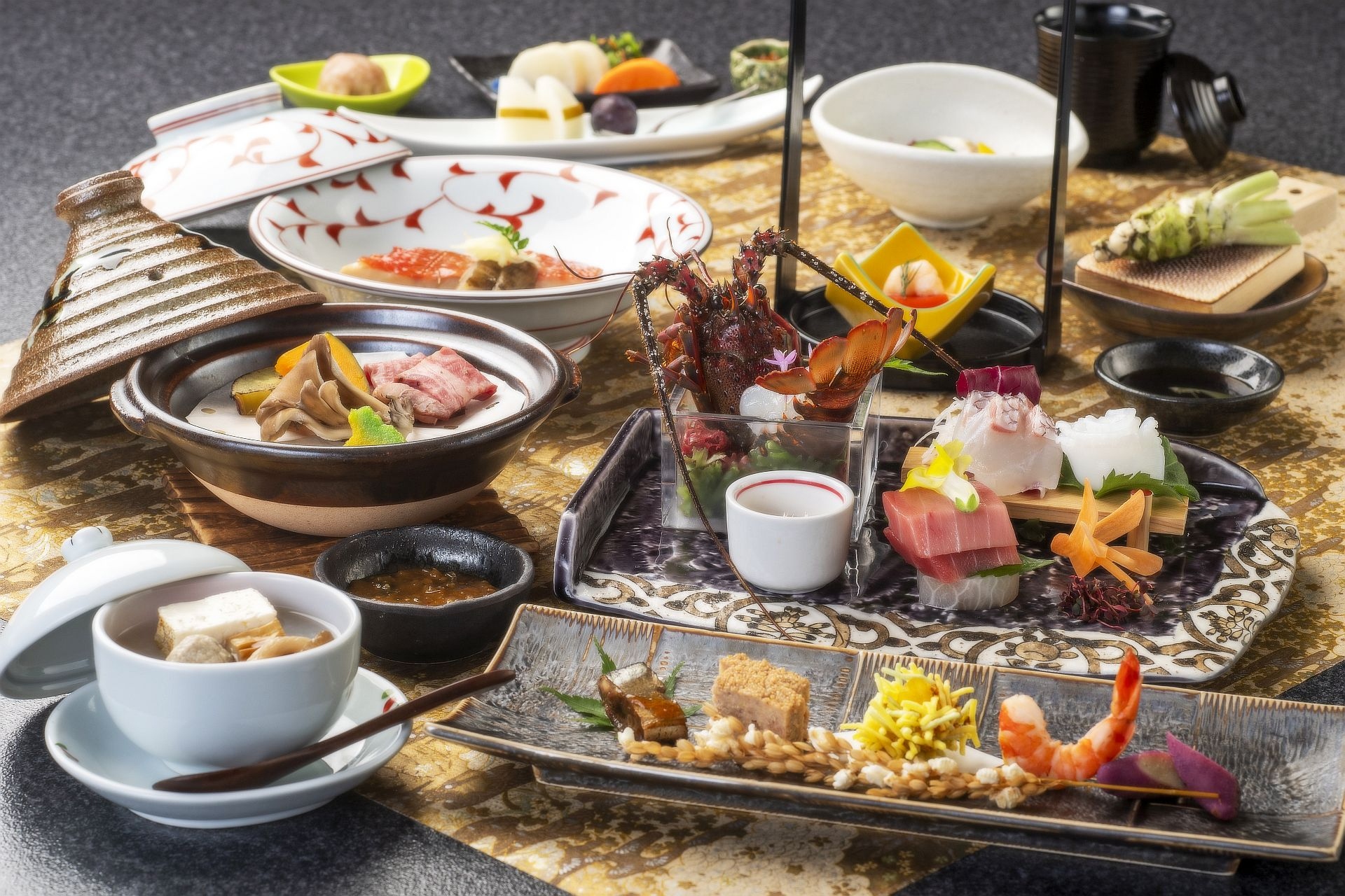 南伊豆産伊勢海老のお造りや下田特産の金目鯛など、伊豆近海で水揚げされる旬の海の幸を中心に、季節感のある贅沢な和会席膳をご用意いたします。