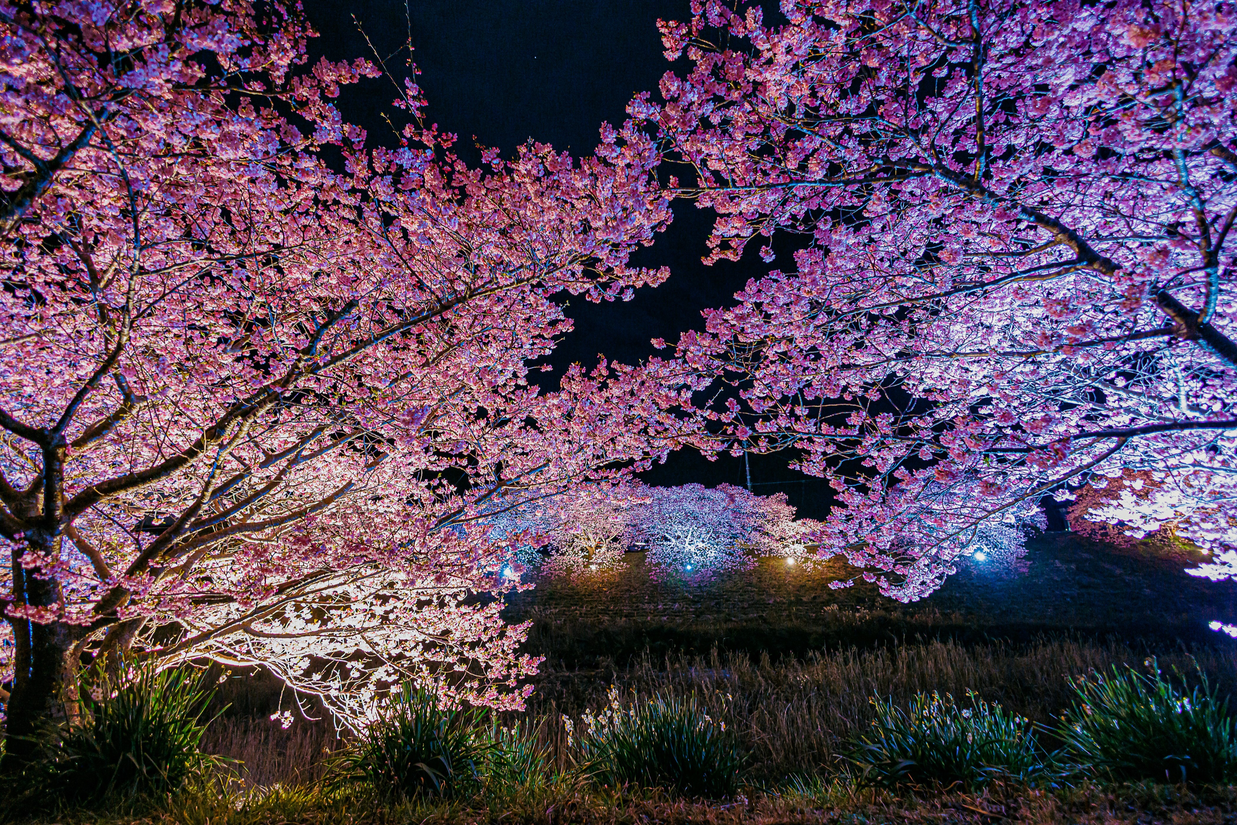 ライトアップされた幻想的な桜を、ゆったりとお楽しみください。
