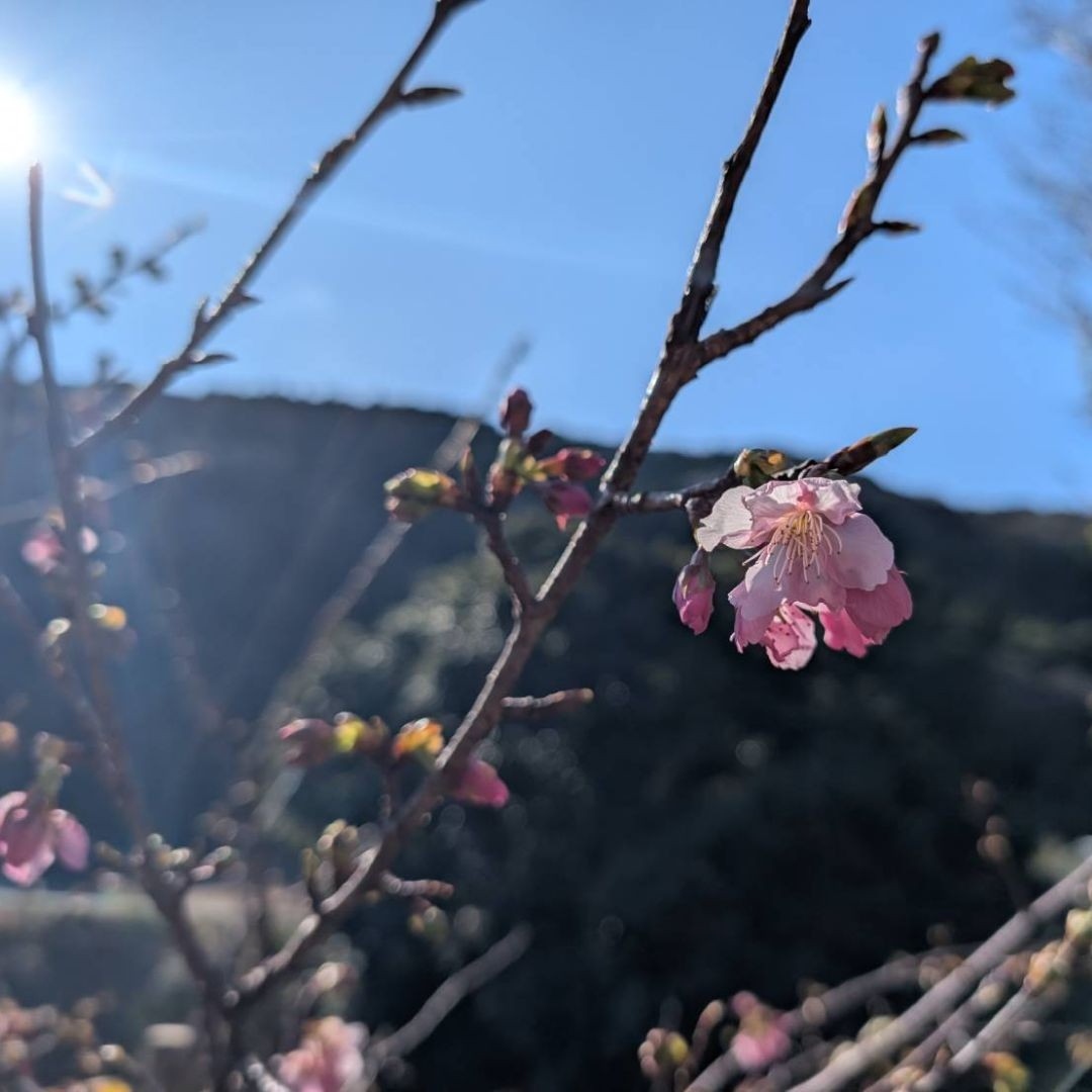 ホテル内の庭園「花と緑とさくらの小径では、白浜伊古奈が咲き始め、河津桜も一部で開花がスタート。