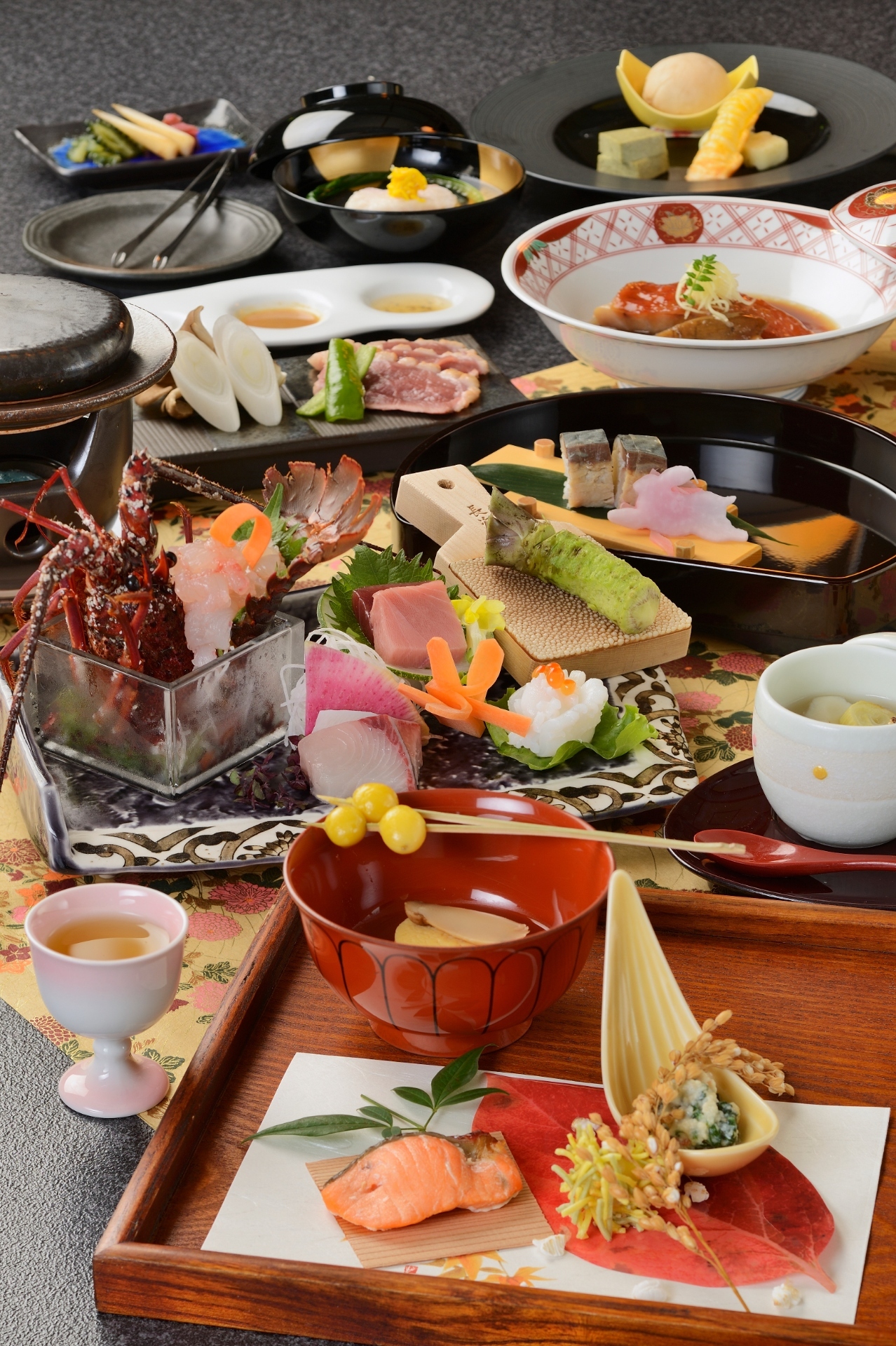 伊豆ならではの地味豊富な地元食材を、料理長が一皿ごとに彩り豊かに仕上げる里山の和会席膳。