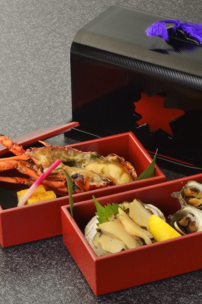 伊勢海老・鮑・金目鯛、伊豆の三大味覚を中心に厳選素材のお重をご提供!